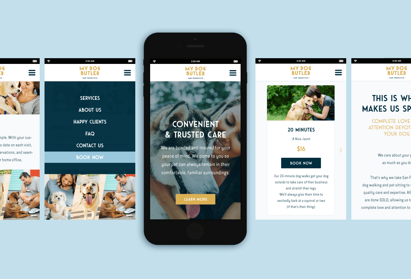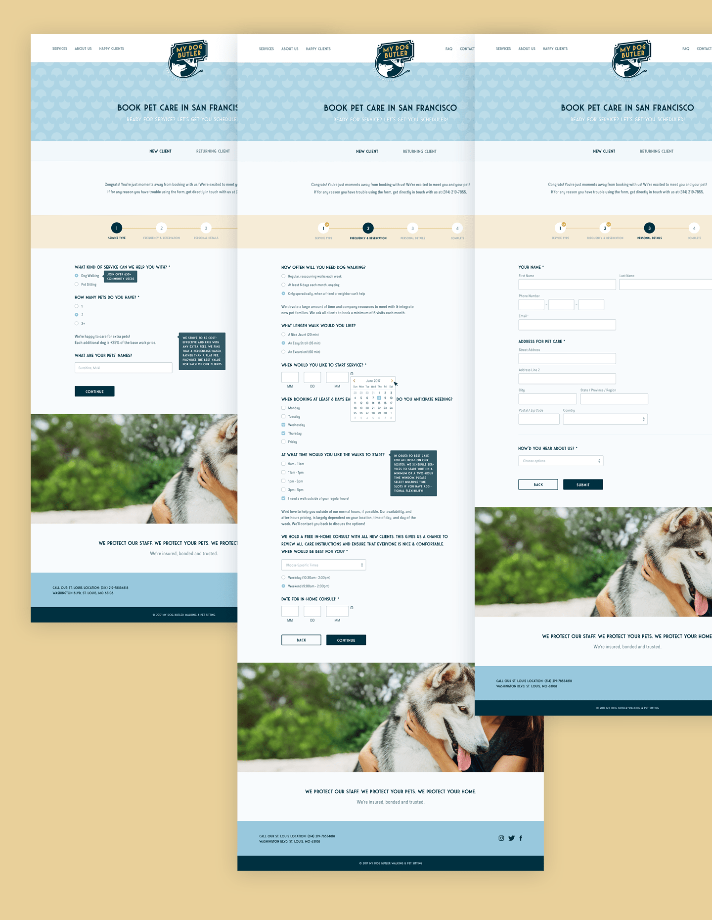 My Dog Butler formerly known as Wags was founded back in 2012 by Camille Noell and Jayce McQuerter in St. Louis, Missouri. Their mission and purpose has remained constant: providing high-quality customized dog walking and pet sitting services in the area. Their local success was about to turn into a national business. Therefore, a new logo and website became necessary.