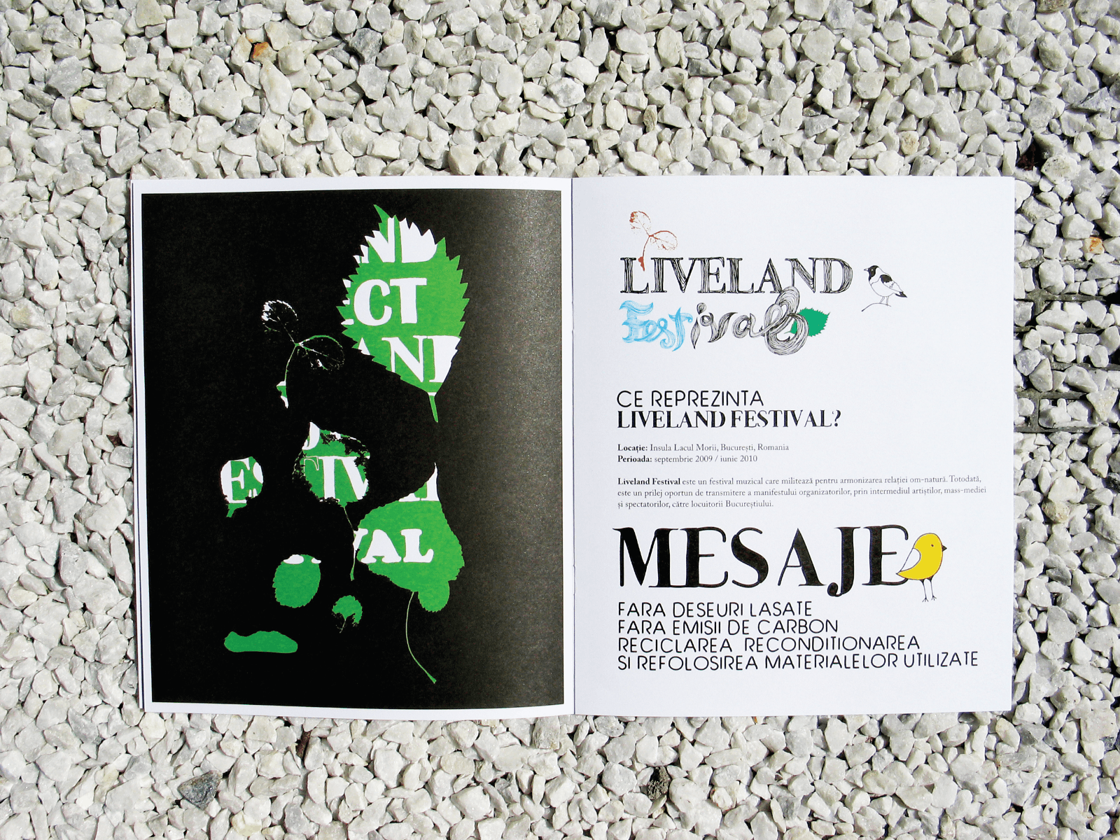 Liveland Festival is an international music event launched in Romania in 2010, centered on cultural revival and sustainability. The visual identity uses a leaf to symbolize nature and birds to evoke harmony and coexistence. Hand-drawn elements capture organic imperfections, reflecting the fragility of environmental issues and our individual responsibility toward cultural and natural preservation.