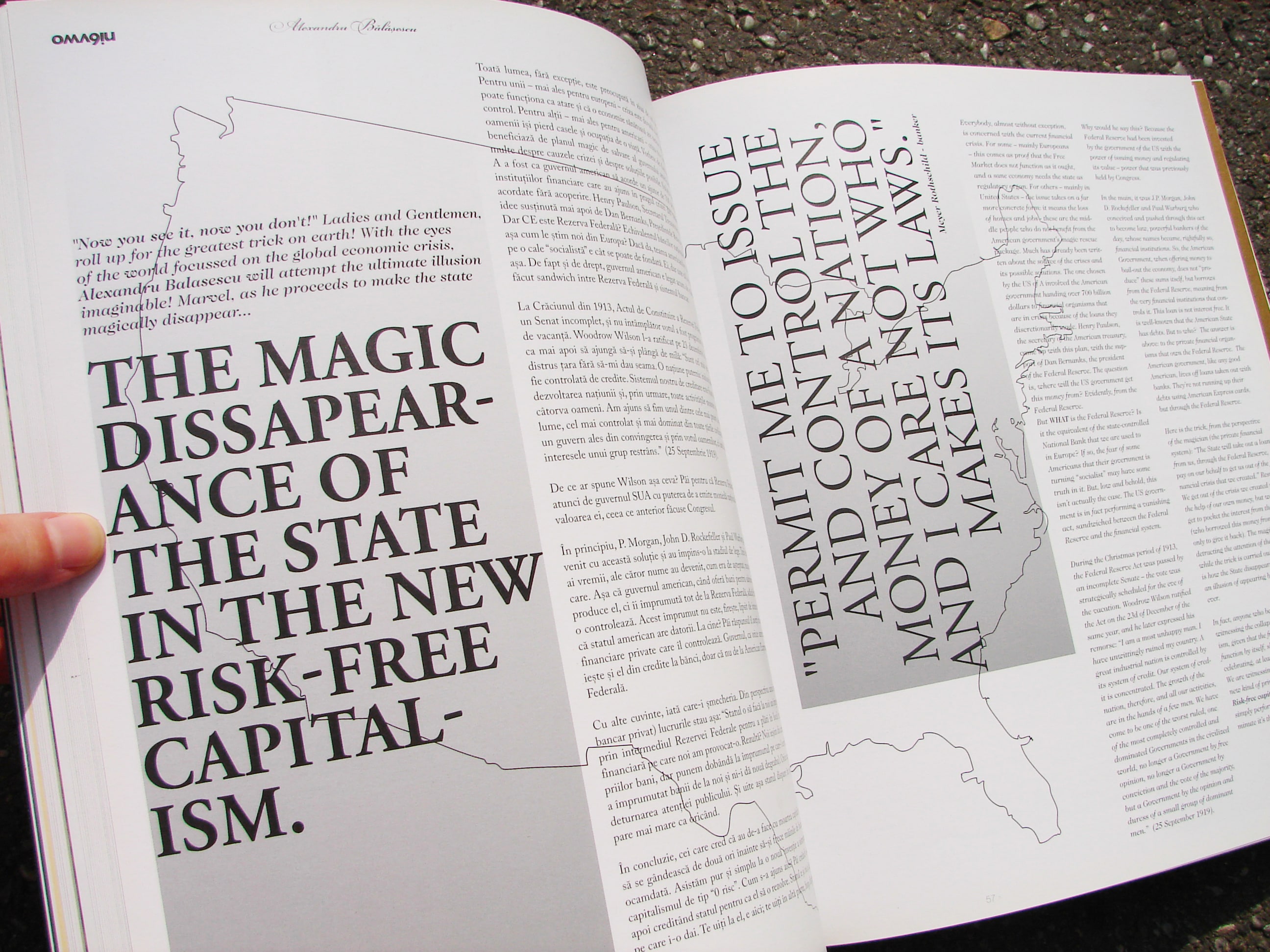 Omagiu was a critically acclaimed remix culture magazine focused on alternative, urban, and underground scenes, highlighting the unique blend of contrasting cultural realities in Romania. Recognized as one of Europe’s top emerging magazines at Colophon Luxembourg (2007, 2009), it was distributed internationally through prestigious bookstores, museums, and cultural institutions. The magazine collaborated with local and international artists and acted as a bridge within the creative community. I led all aspects of production and promotion, from concept and art direction to design, pre-press, team coordination, and media campaigns.